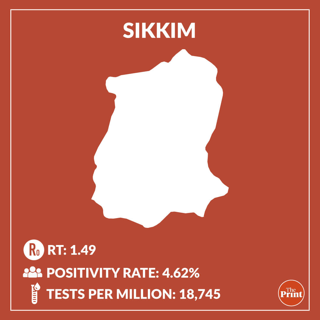 Sikkim has India’s second highest Rt value, at 1.49. The state’s test positivity rate stands at 4.62 per cent, and it has conducted 18,745 tests per million. A total of 198 Covid-19 cases have been reported in the state since Tuesday, of which 112 are active cases.