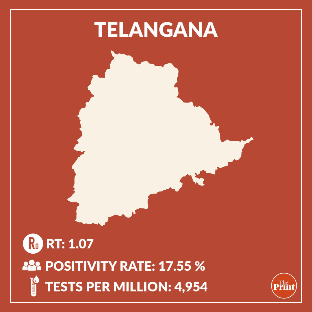 Telangana recorded an Rt value of 1.07 and the second highest positivity rate in India, after Maharashtra, at 17.55 per cent. Hospital workers in Telangana have reportedly claimed that Covid-19 deaths are being under-reported in the state. It has conducted only 4,954 tests per million, which is the third lowest in the country.