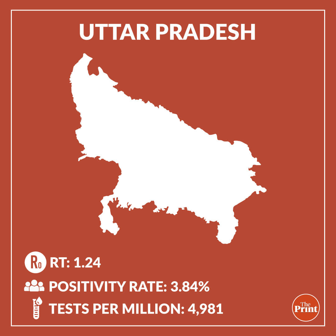 Uttar Pradesh has recorded an Rt value of 1.24, a positivity rate of 3.84 per cent. It has conducted only 4,981 tests per million so far. The UP government on Tuesday issued a directive detailing a weekend lockdown. On Wednesday, the state recorded 1,656 new cases, taking its total tally to 40,000.