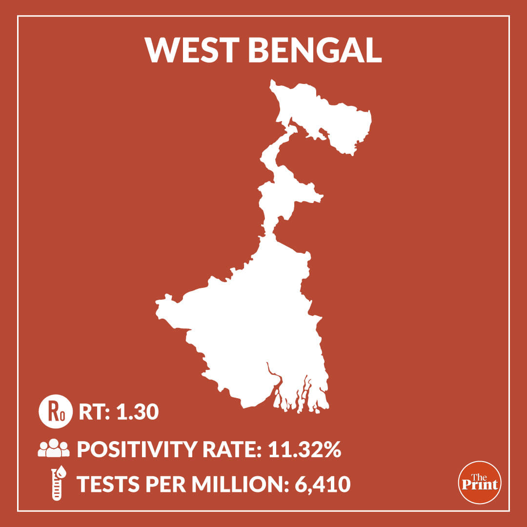 West Bengal has an Rt value of 1.30, a relatively high positivity rate of 11.32 per cent, relatively low testing at 6,410 tests per million. On Tuesday, the state government decided to extend the lockdown in containment zones till 19 July. With 1,435 new cases, the infection tally in the state has touched 31,448 cases.