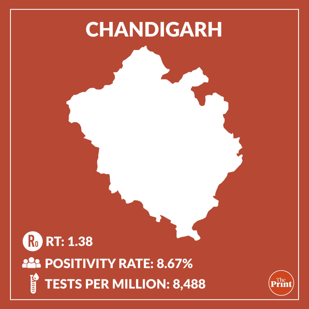The union territory of Chandigarh has an Rt value of 1.38, a positivity rate of 8.67 per cent, and has conducted 8,488 tests per million. On Tuesday, twelve new cases of Covid-19 took the total tally to 600.