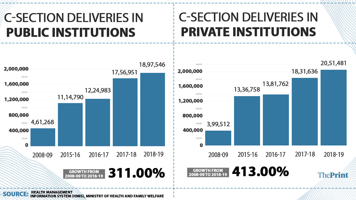 India has registered a jump of over 300 per cent in C-section deliveries at public hospitals, and 400 per cent in private hospitals in the last decade.