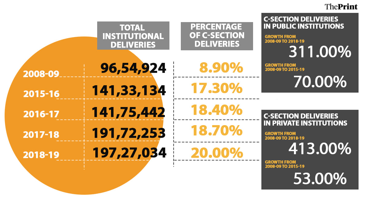 In 2018-19, India conducted 20 per cent of the total institutional deliveries through C-section, against 18.7 per cent in the previous year.