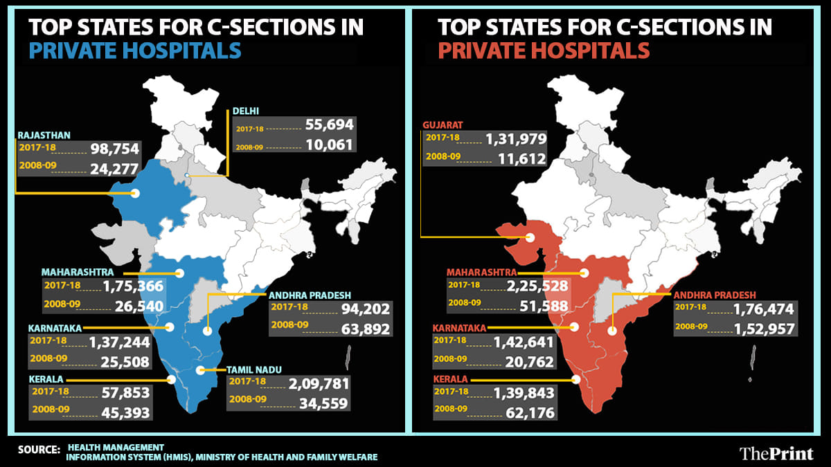 In Maharashtra, the C-section deliveries shot from 26,000 in 2008-09 to 1.75 lakh in public hospitals, and from 51,000 to 2.25 lakh in private hospitals.