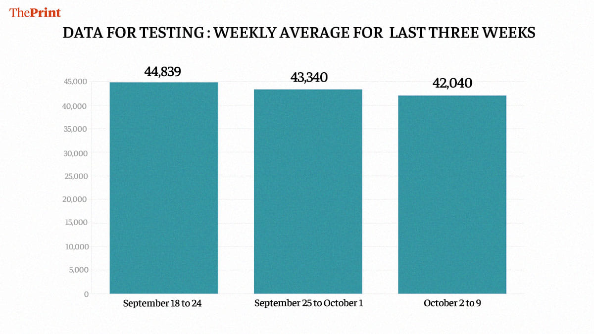 But, the weekly average of testing from 18-24 September was 44,839, from 25 September to 1 October, it was 43,340, and from 2-9 October, it stood at 42,040.
