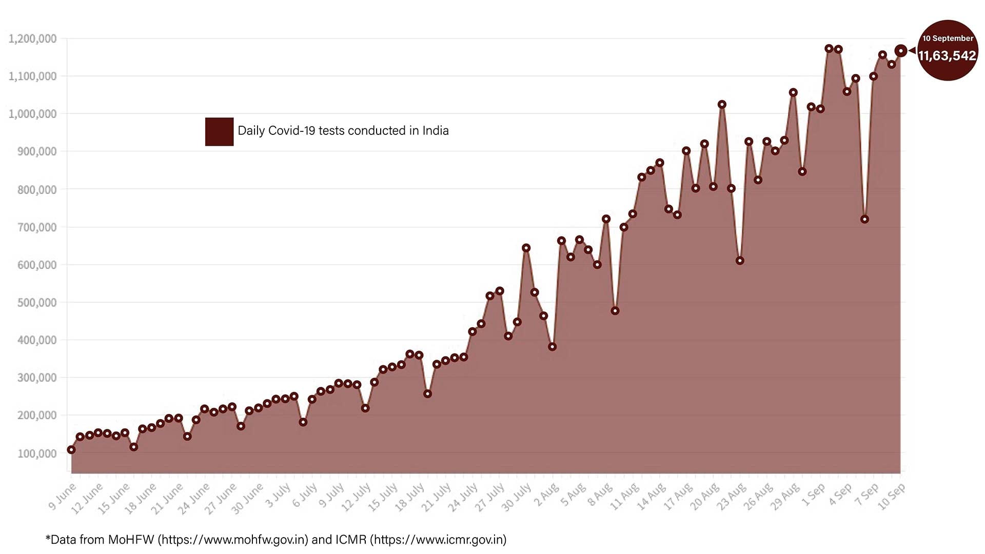 In the last 24 hours, 11,63,542 tests were conducted in the country, which is impressive, but India’s testing rate per million is still among the worst in the world. It currently stands at 39,127 per million which is less than countries like Brazil, Peru and South Africa. United Arab Emirates (UAE), which is among the highest testing countries, has conducted 7,94,100 tests per million population.