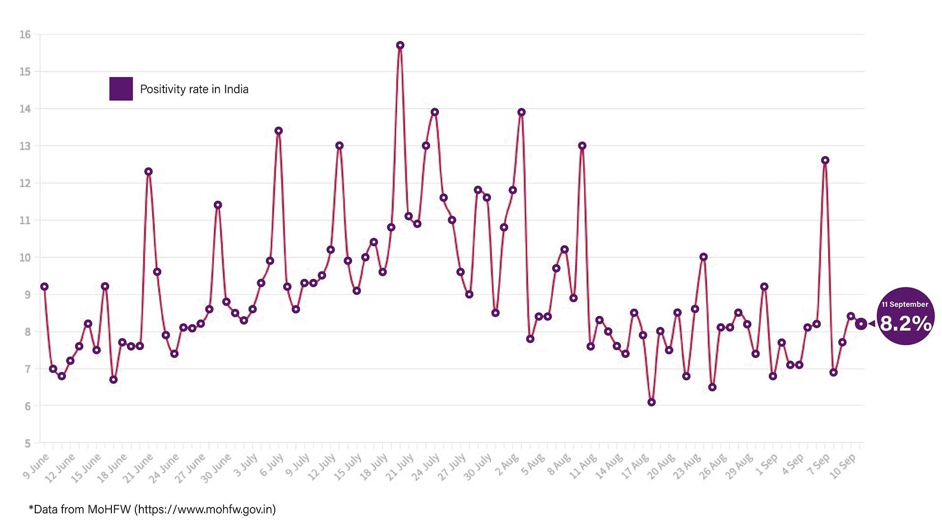 The positivity rate of India remains above 8 per cent despite a substantial increase in testing. Testing was increased to over 10 lakh daily to bring this rate down to an acceptable 5 per cent, but the rising number of daily positive cases has not let that happen yet.