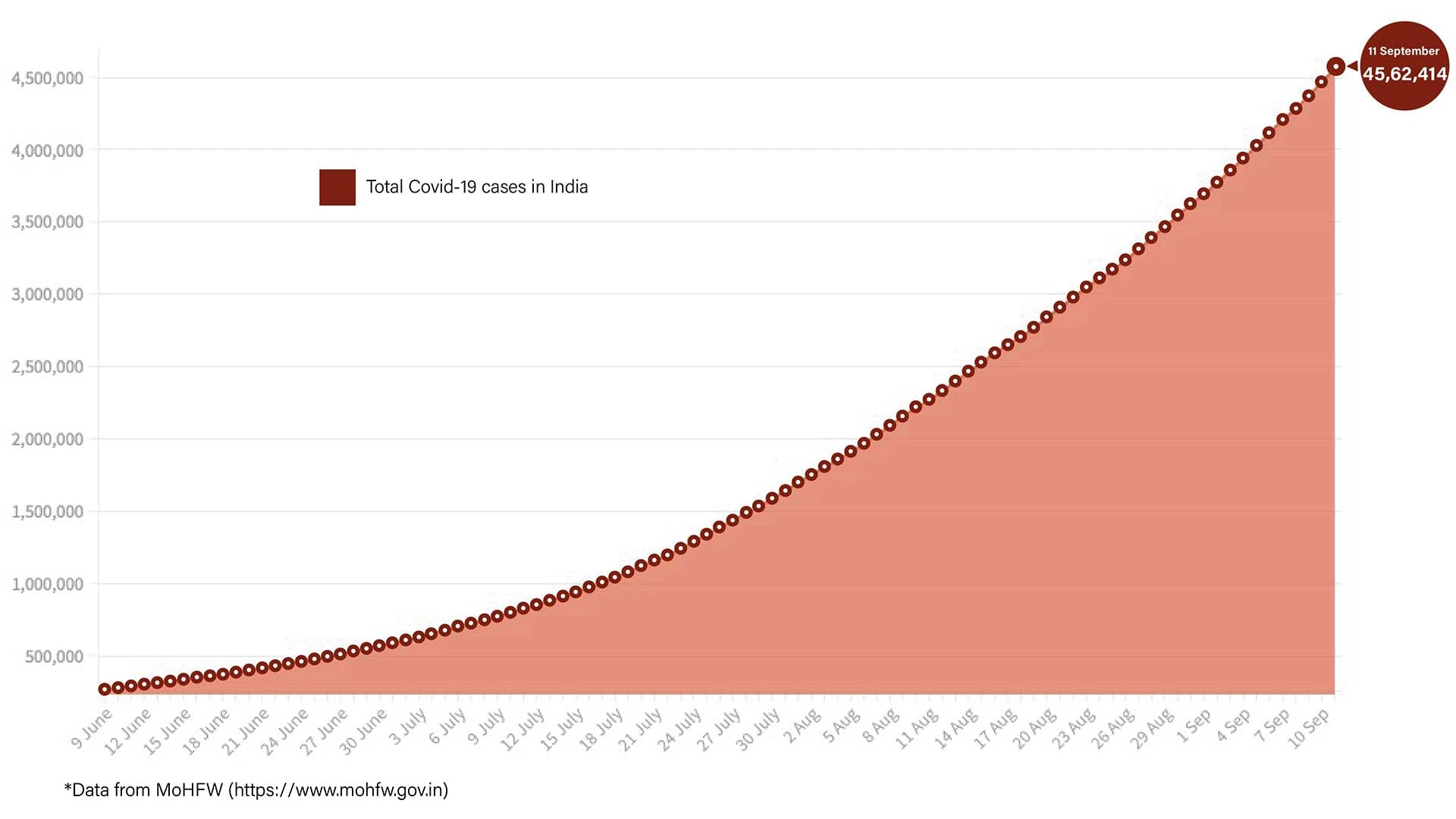 With a total of 45,62,414 cases, India has registered the second highest number of cases in the world. This comes at a time when most of the other countries seem to be managing the pandemic far better than before. However, India’s numbers are starting to tell a different story.