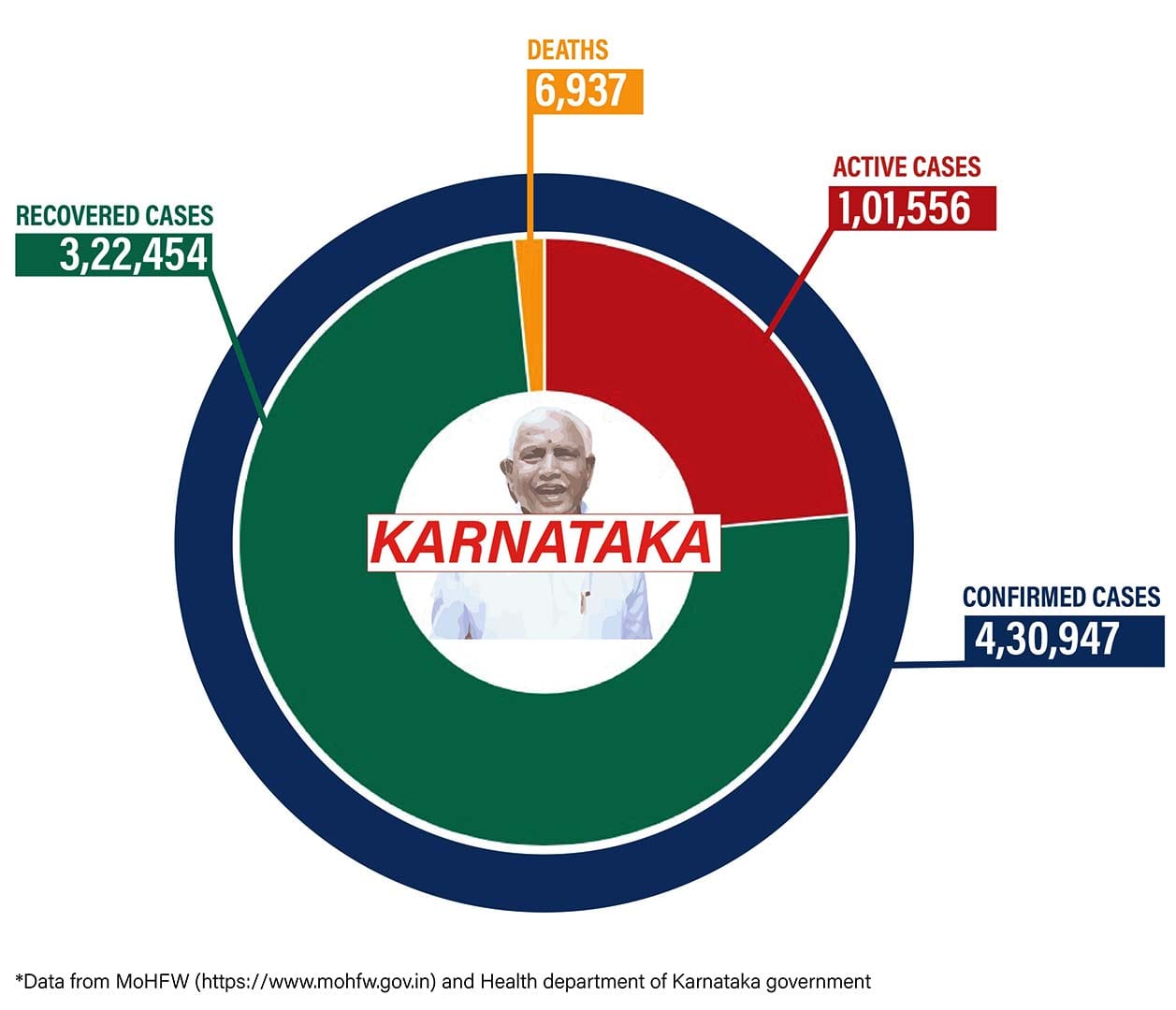 Karnataka has over a lakh active cases of Covid among its total 4,30,947 cases. In the last 24 hours, 9,217 cases were reported along with 129 deaths. The case fatality rate stands at 1.61 per cent.