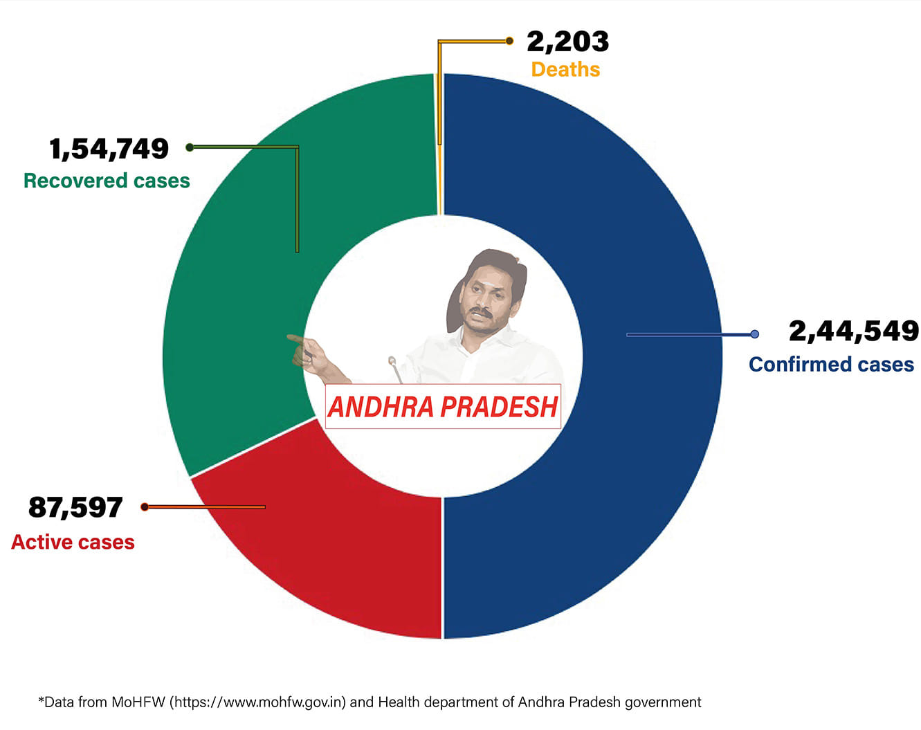 Andhra Pradesh has seen a massive spurt in cases in the last few weeks but the silver lining is that the deaths have been low. In the last 24 hours, 7,665 cases and 80 deaths have been reported.