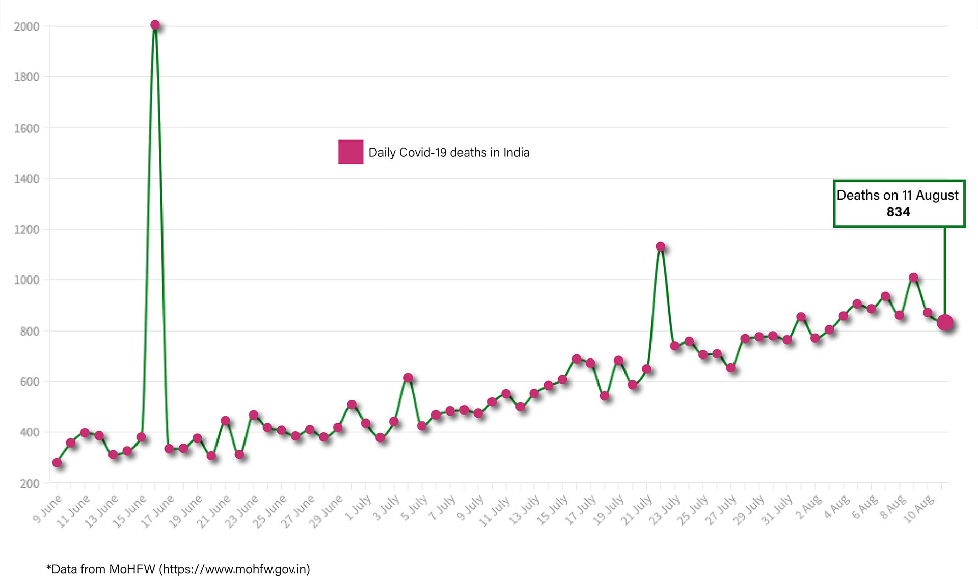 In the last 24 hours, 834 people have lost their lives because of Covid. This takes the total toll to 46,091 with a case fatality rate of just less than 2 per cent.
