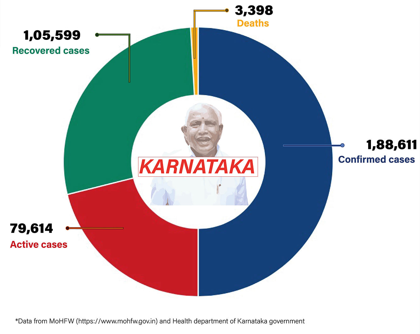 Karnataka continues to have a low doubling time even though in the last 24 hours, 4,267 new cases were reported along with 114 deaths. The case fatality rate is marginally below the national average.