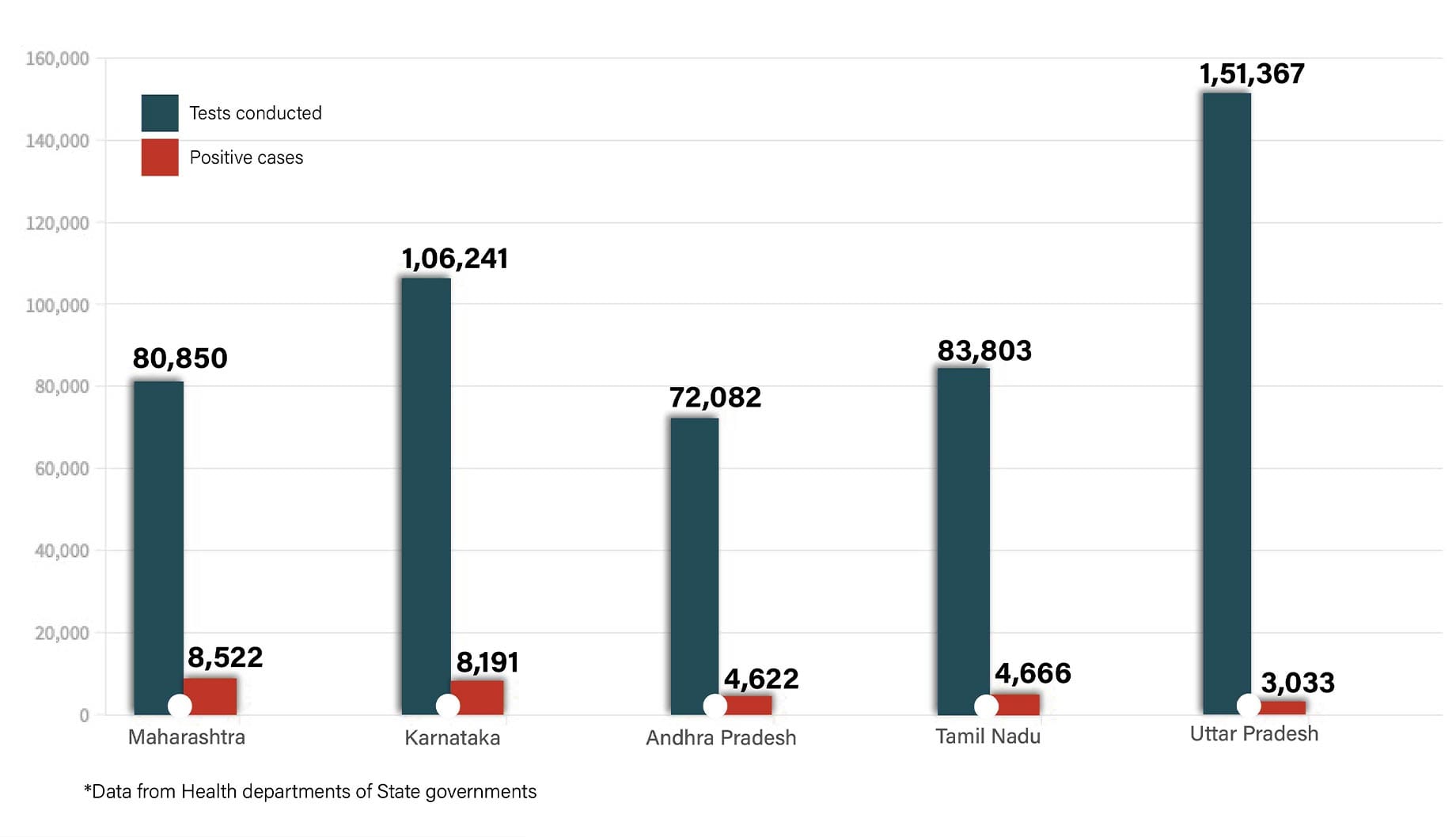 Uttar Pradesh conducted over 1.51 lakh tests and reported 3,033 positive cases — which reduced its test positivity rate to 2 per cent.