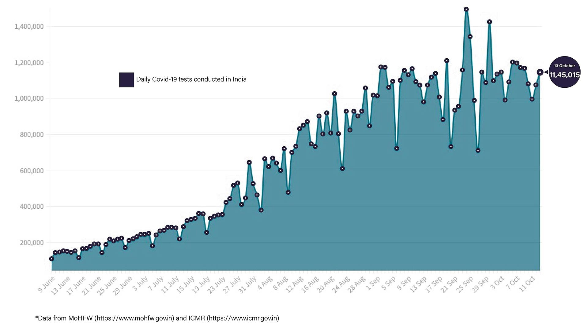 A total of 11,45,015 tests were conducted in the 1,935 testing labs in the country, including 1,101 government and 768 private labs in the past 24 hours. The total number of tests done till date stands at 9,00,90,122.
