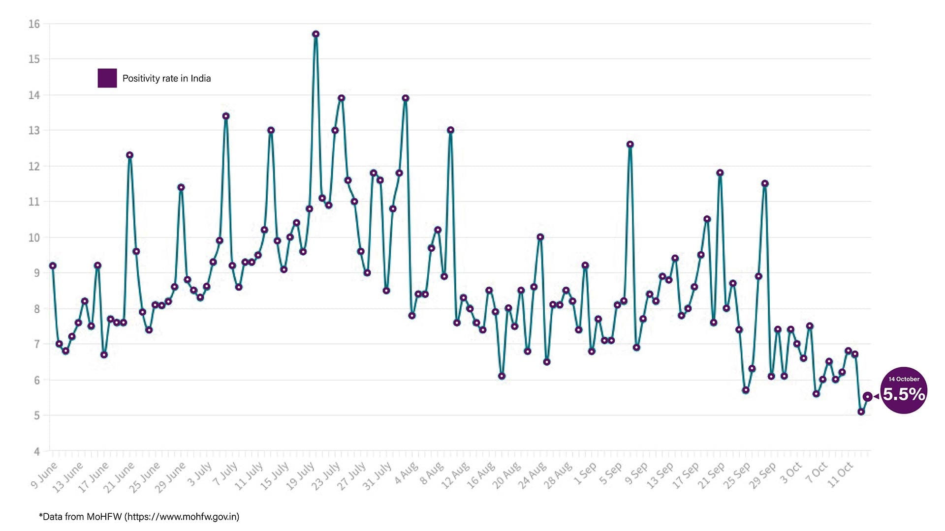 The test positivity rate increased to 5.5 per cent in the last 24 hours. This comes a day after the TPR fell to its lowest value since June. The overall test positivity rate, calculated since the beginning of the pandemic, is 8 per cent.