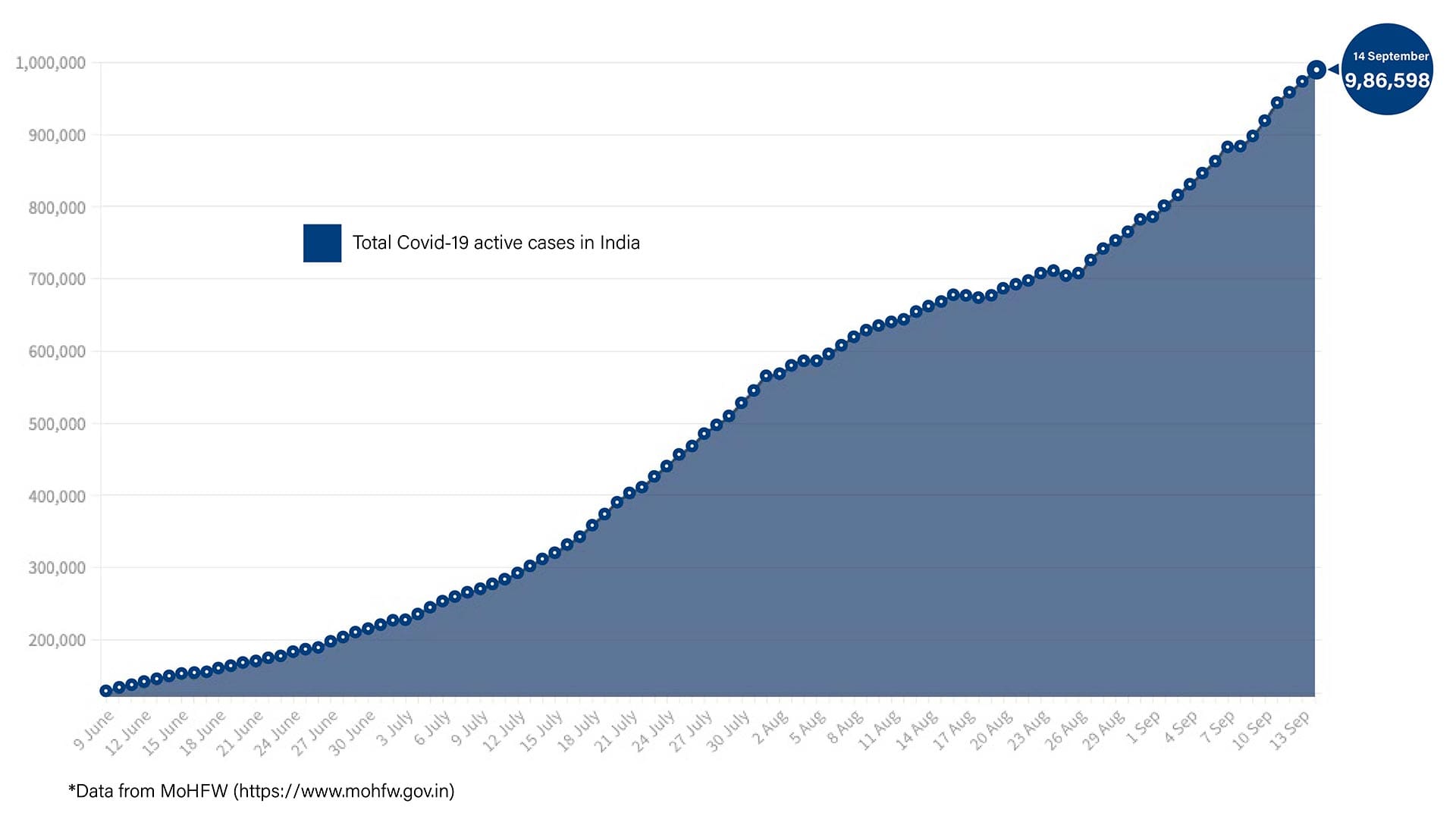 The total number of active cases in the country stands at 9,86,598. More than 60 per cent of the active cases are concentrated in five states — Maharashtra, Karnataka, Andhra Pradesh, Uttar Pradesh and Tamil Nadu.