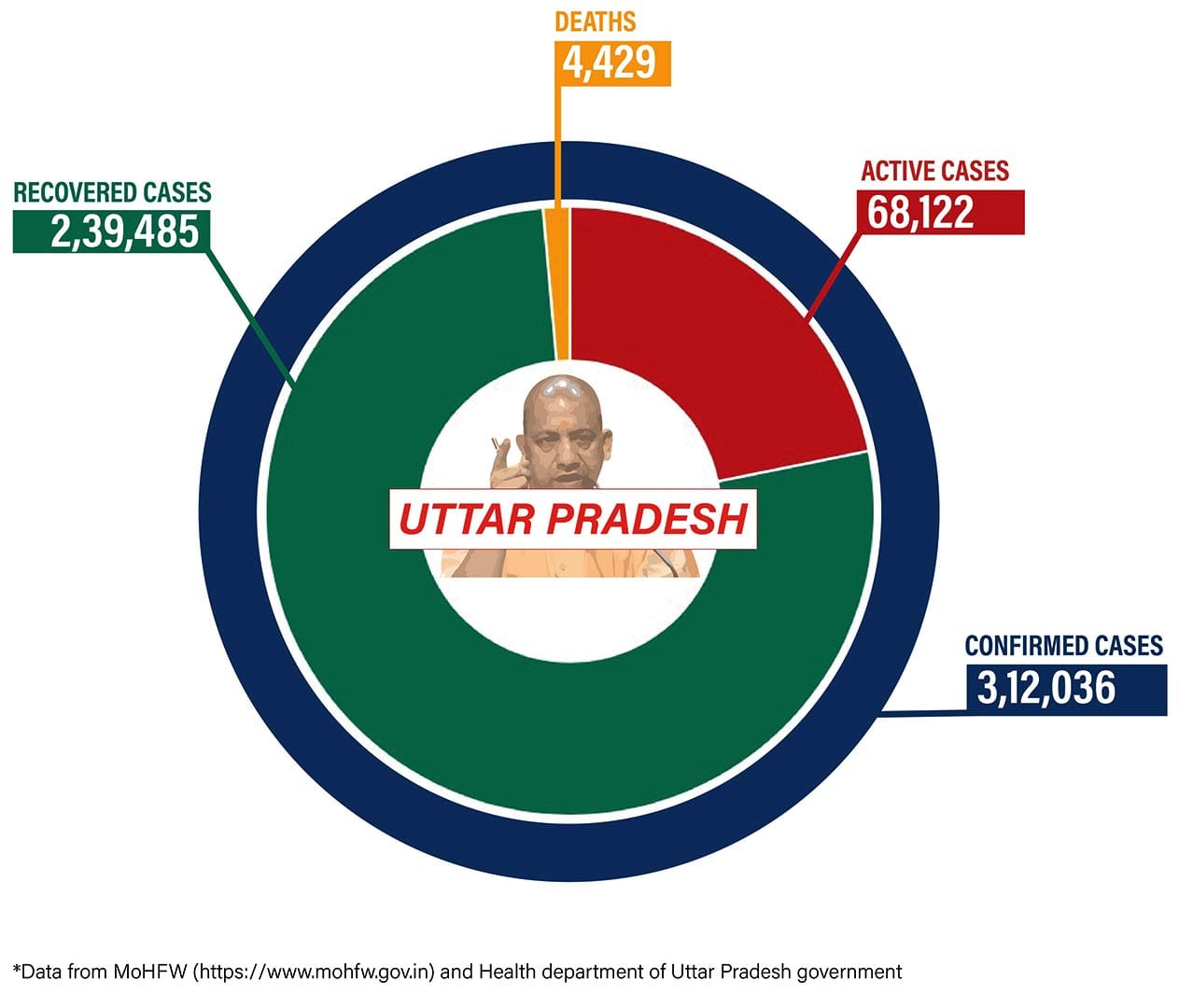 Uttar Pradesh has recorded 3,13,036 cases and 6,205 of these were reported in the last 24 hours. The state has 68,122 active cases so far.