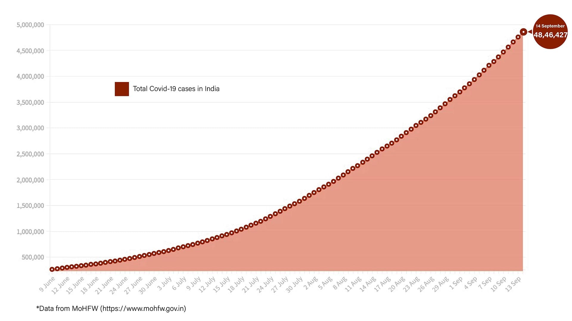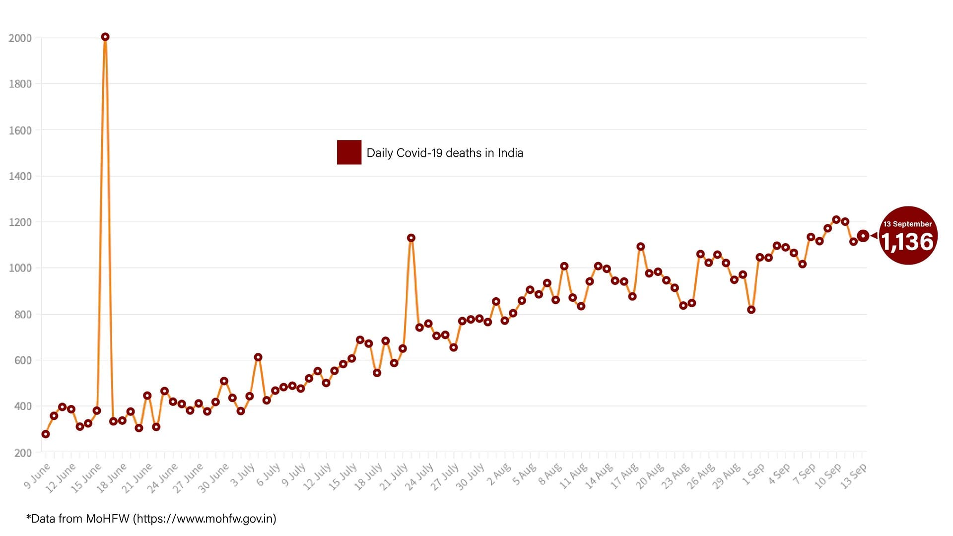 In the last three days, 4,660 deaths were reported in India taking the toll to 79,722. The case fatality rate of the country currently stands at 1.67 per cent. According to the World Health Organization, as of 11 September, 215 countries/territories have been affected by the pandemic