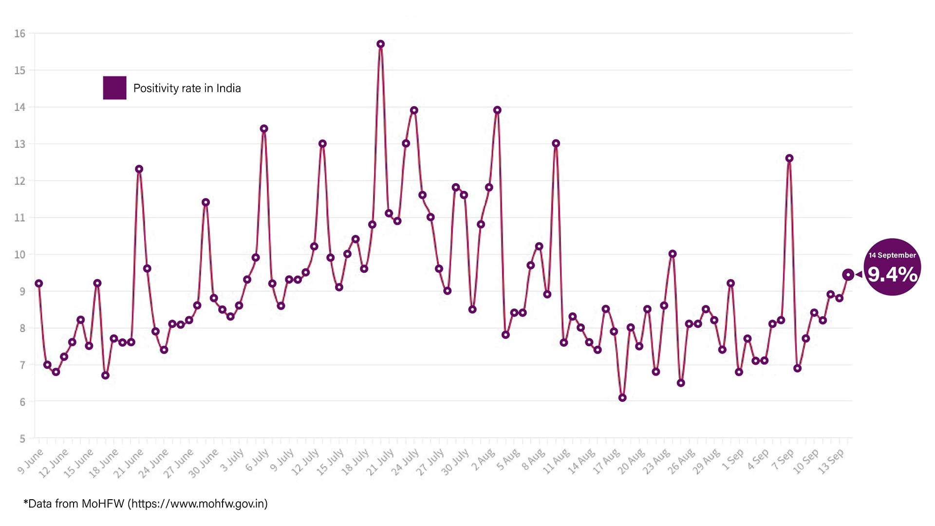 The weekend testing dip pushed the positivity rate to 9.4 per cent. As the graph shows, this rate has been on the rise for the past few days as over 90,000 daily positive cases have been recorded for five consecutive days now.