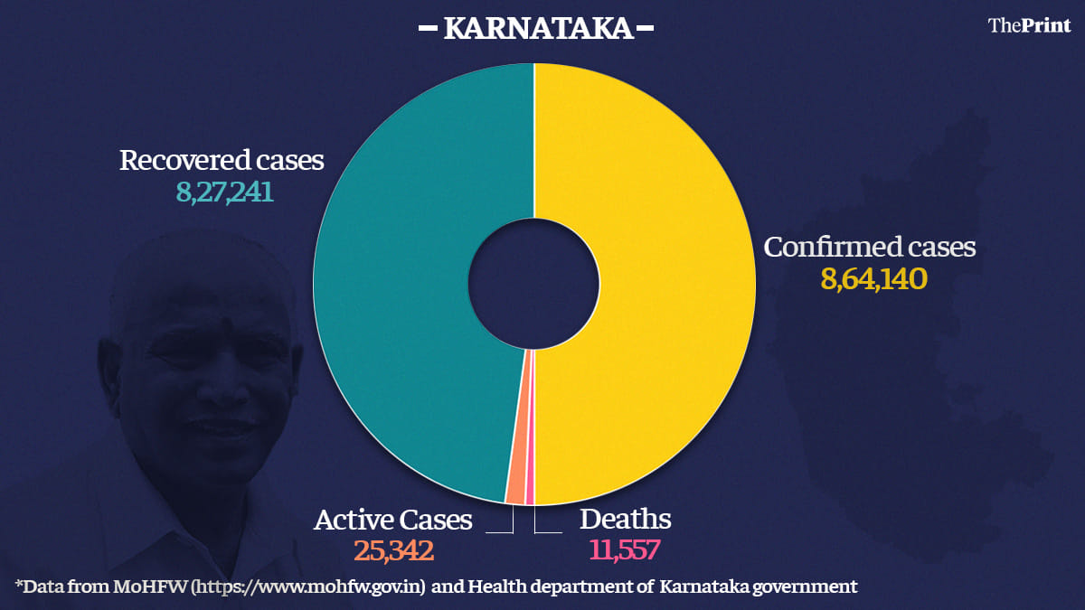 In Karnataka, the active caseload has reduced to 25,342. The total number of cases detected in the state is now 8,64,140 — which is the second-highest number of total cases.