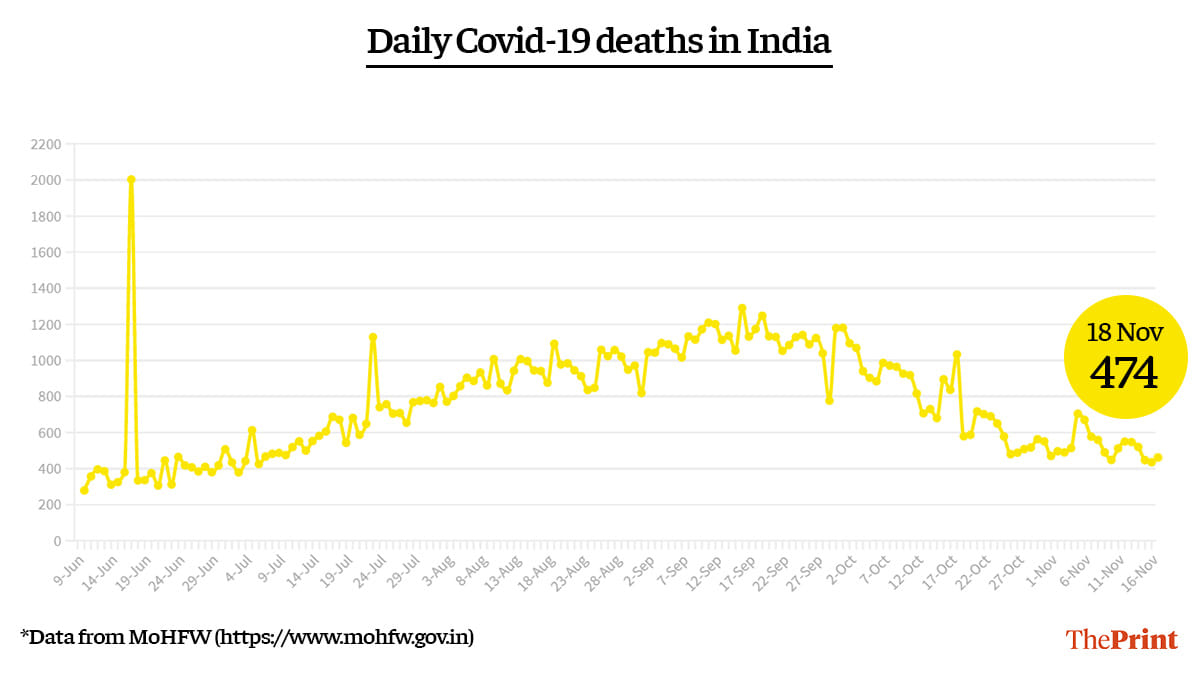 With 474 deaths reported in the last 24 hours, the number of daily Covid fatalities has remained below 500 for four days in a row. India’s death toll now stands at 1,30,993 — which accounts for 9.9 per cent of the total deaths in the world from the pandemic.