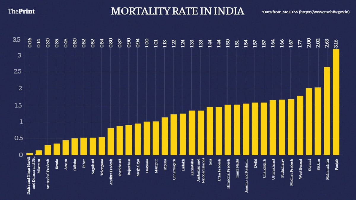 Punjab continues to have the highest case fatality rate at 3.16, an increase from 3.14 last week. Maharashtra has the second-highest CFR at 2.63