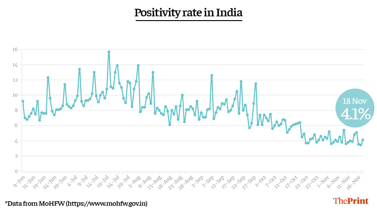 With an increase in the number of cases, the test positivity rate also increased to 4.1 per cent Wednesday. Calculated since the beginning of the pandemic, the overall TPR for India further reduced to 6.9 per cent.