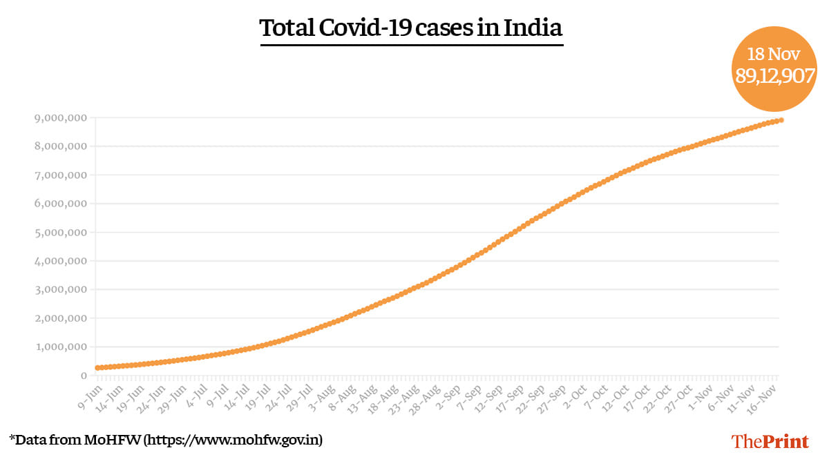Since the beginning of the pandemic, 89,12,907 people in India have been infected with Covid-19.