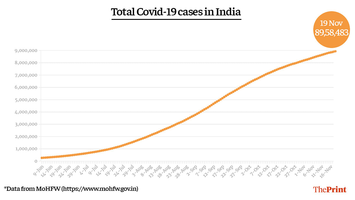 Since the beginning of the pandemic, 89,58,483 people have been infected by the virus in India.