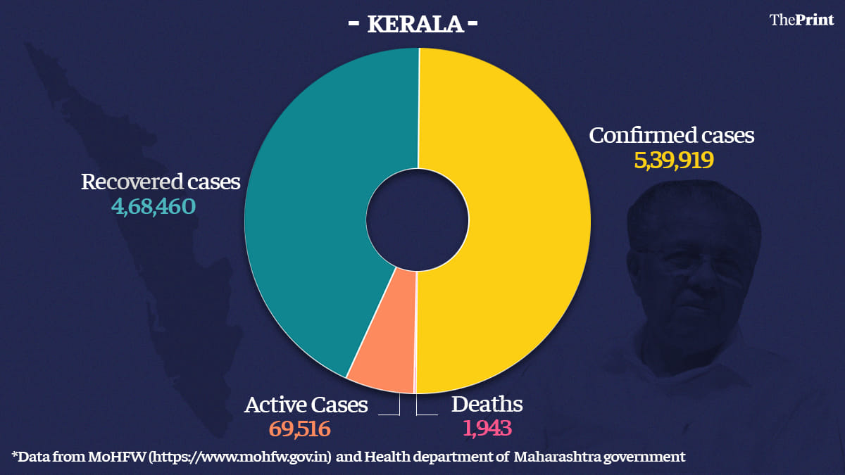 Kerala’s active case load is the second-highest in the country with 69,516 active cases as of Thursday.