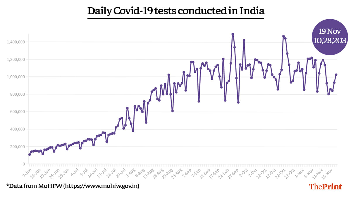 The number of tests conducted in the last 24 hours increased to over 10 lakh. Therefore, the number of daily cases detected increased as well.