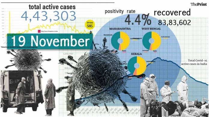 As recoveries continue to outnumber daily cases, the total active caseload in India fell to 4,43,303 — which is 4.95 per cent of the total cases detected in the country since the beginning of the pandemic.