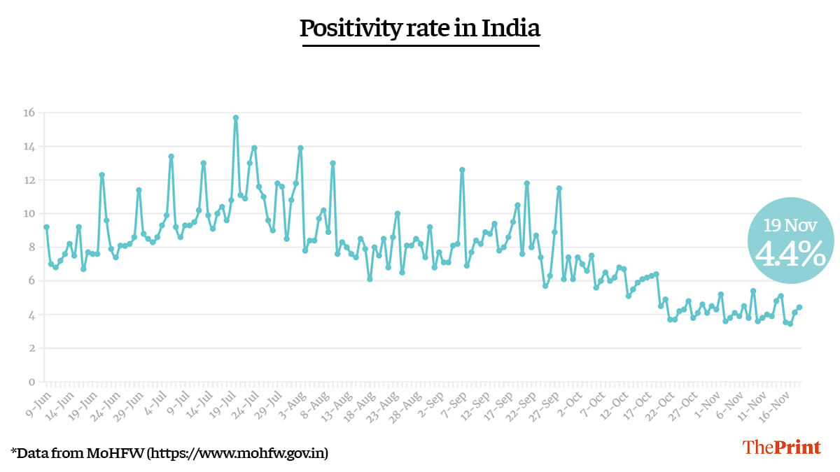 The overall TPR for India, calculated since the beginning of the pandemic, further reduced to 6.9 per cent.