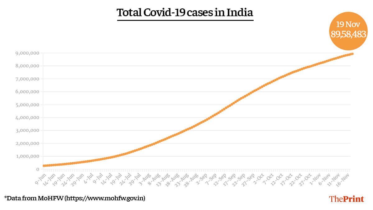 Since the beginning of the pandemic, 89,58,483 people have been infected by the virus in India.
