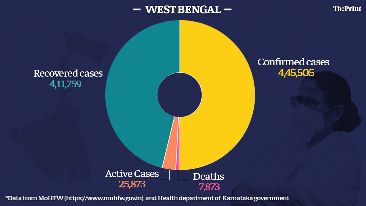 West Bengal has recorded 25,873 active cases and 7,873 deaths till date. It accounts for 5.83 per cent of total active cases in India.