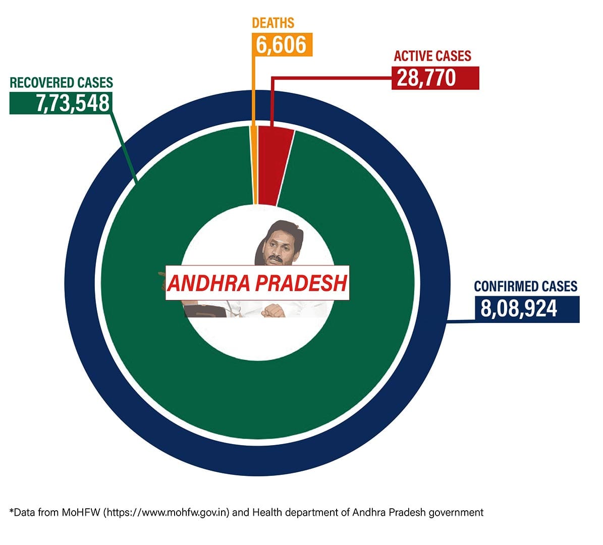 A total of 8,08,924 cases have been reported in Andhra Pradesh since the beginning of the pandemic.