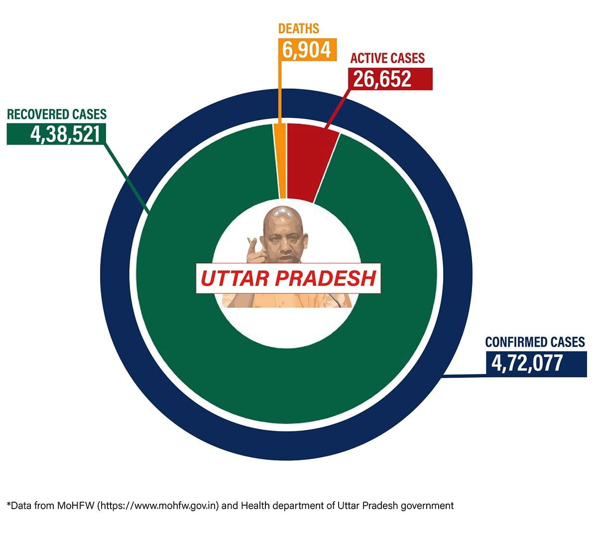 In Uttar Pradesh, 4,72,077 cases of coronavirus have been reported since the beginning of the pandemic. The state has 26,652 active cases, while a total of 6,904 people have died in the state. As many as 22 deaths were reported from the state in the last 24 hours.