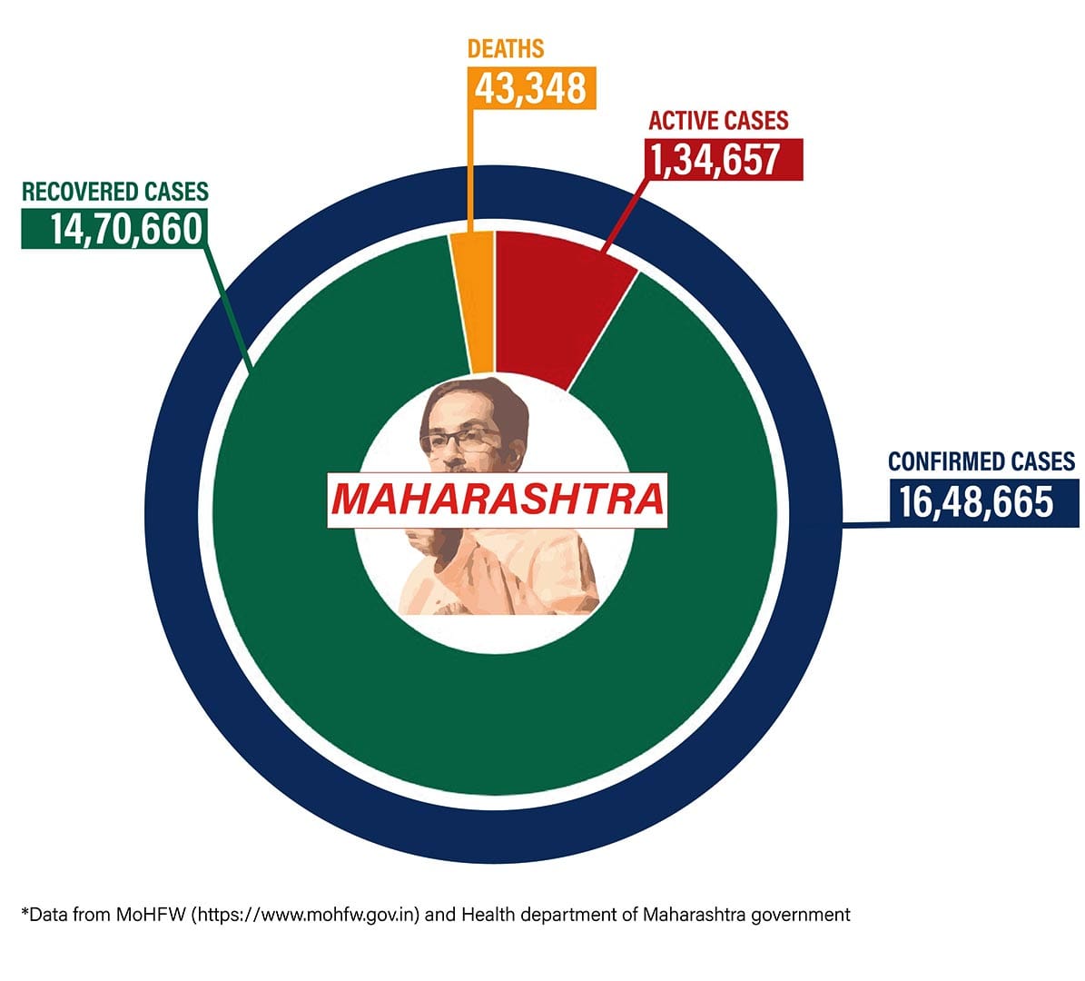 In the past 24 hours, 84 people died in the state, which has increased the state’s death toll to 43,348. This accounts for more than one-third of the total deaths in India, so far.