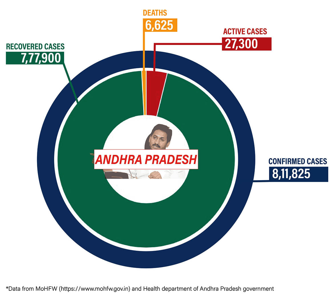 In Andhra Pradesh, 2,901 people tested positive for the Covid-19, while 19 people have died in the last 24 hours. This brings the state’s active caseload to 27,300 and the death toll to 6,625.