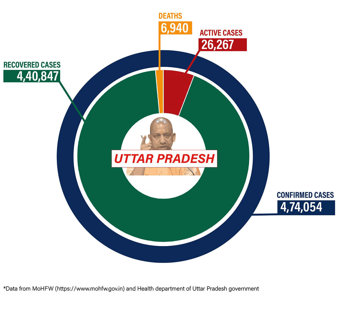 Uttar Pradesh has registered 26,267 active cases as of Wednesday. In the last 24 hours, the state reported 2,018 new Covid-19 cases. As many as 4,74,054 coronavirus cases have been reported from the state since the beginning of the pandemic, of which 6,940 people have died. Thirty-six deaths were reported in the last 24 hours.