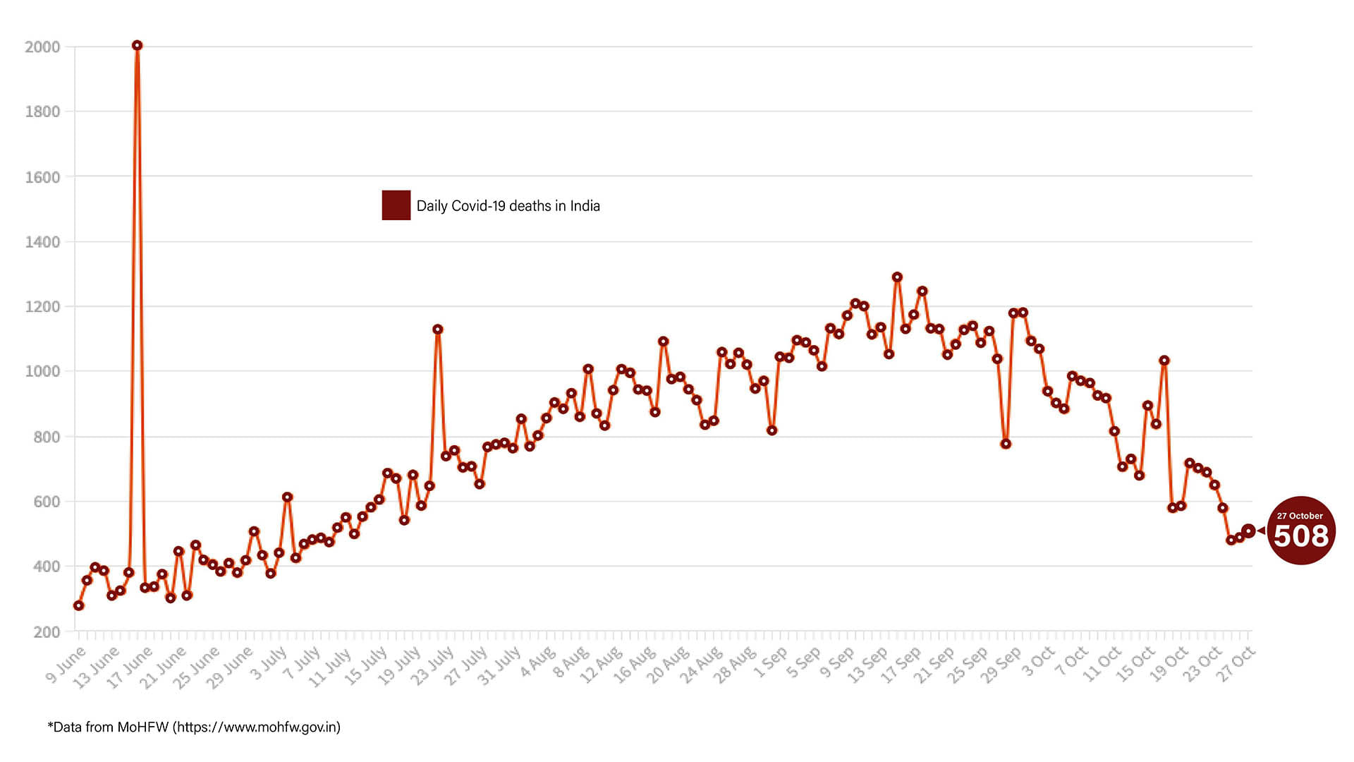 After daily deaths remained below 500 for two consecutive days, India reported 508 Covid deaths in the last 24 hours.