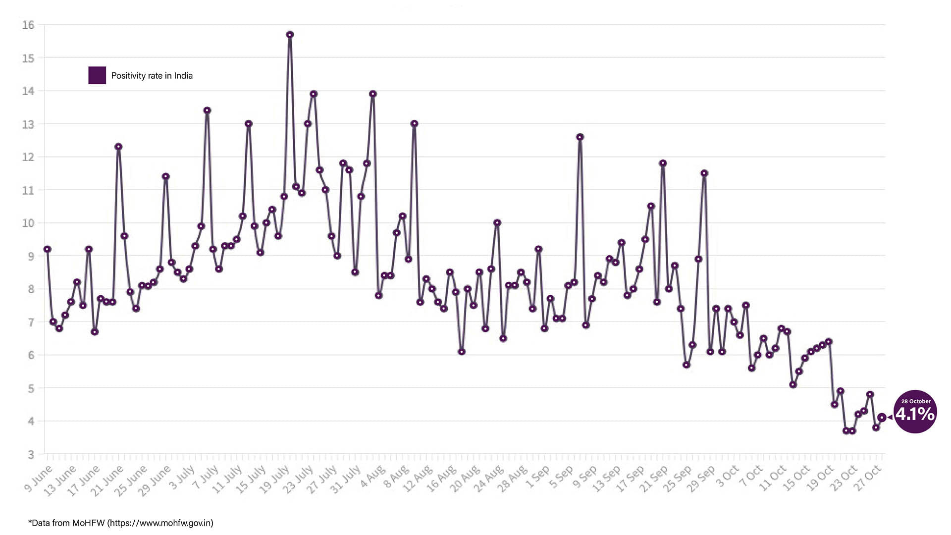 While total active cases continue to decline, the test positivity rate increased slightly to 4.1 per cent, despite a rise in the number of tests conducted — due to a significant increase in the number of people testing positive for Covid-19 in the last 24 hours.