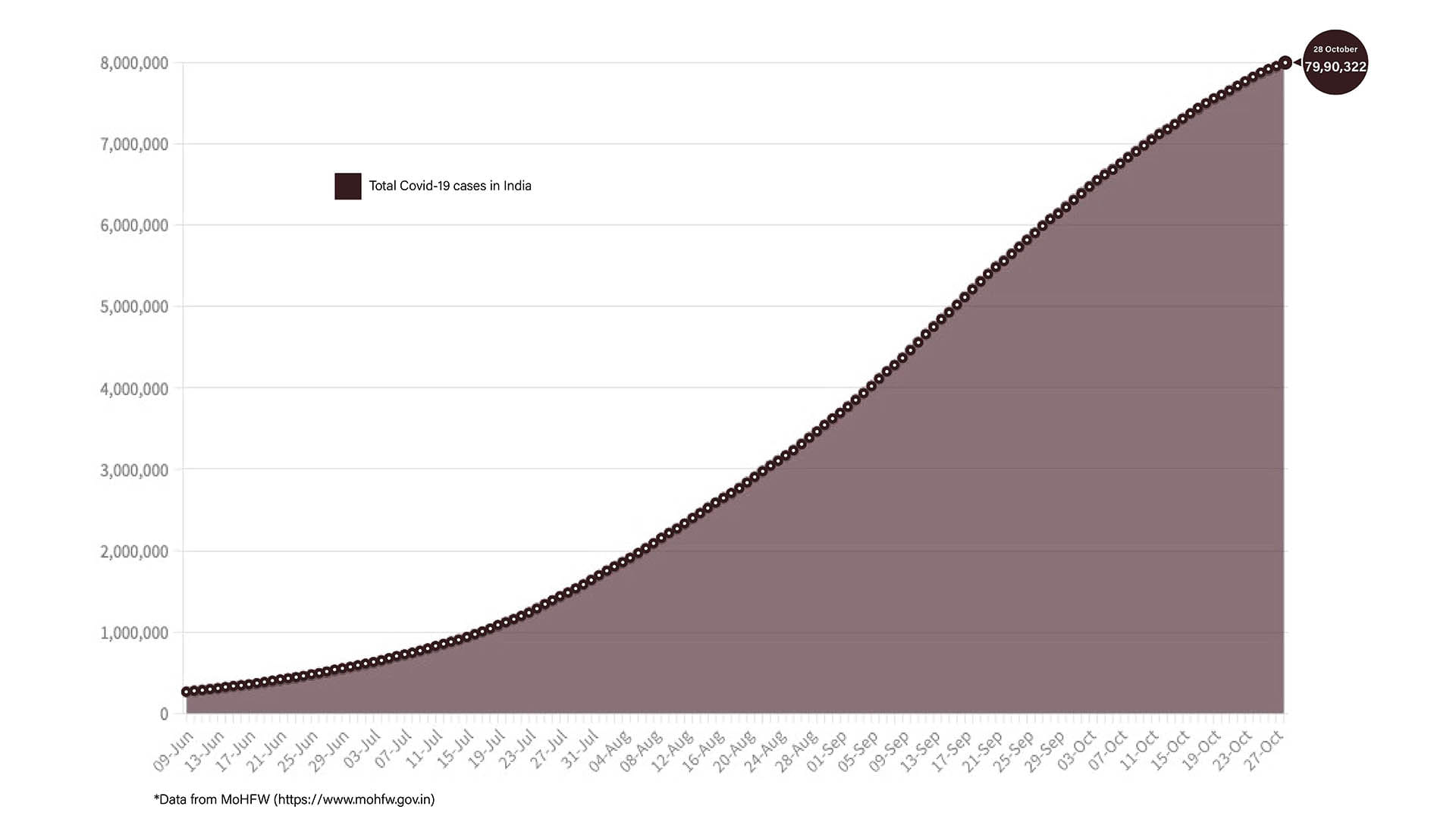 India has, so far, registered 79,90,322 cases, which makes it the country with the second-highest case count in the world.