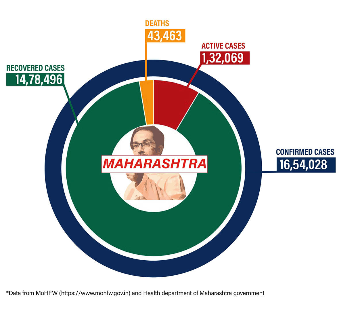 Maharashtra has reported 5,363 new cases in the last 24 hours, taking the total number of cases in the state to 16,54,028. Of these, 1,32,069 cases are active.