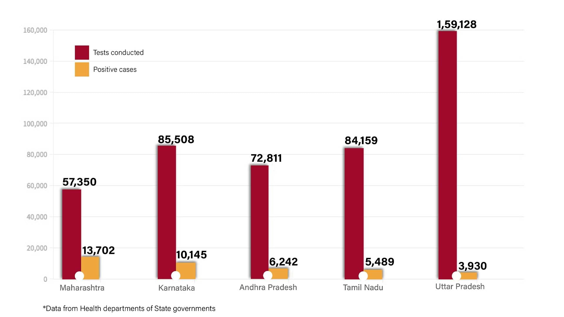 On the other hand, Uttar Pradesh had conducted over 1.5 lakh tests and reported 3,930 positive cases in the last 24 hours.