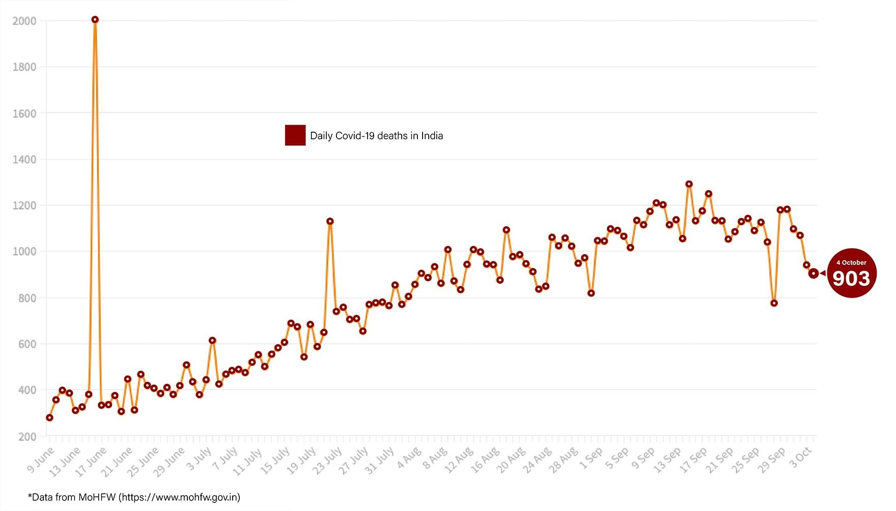 In the last 24 hours, India registered 903 Covid deaths. The total number of reported deaths in India now stands at 1,02,685.