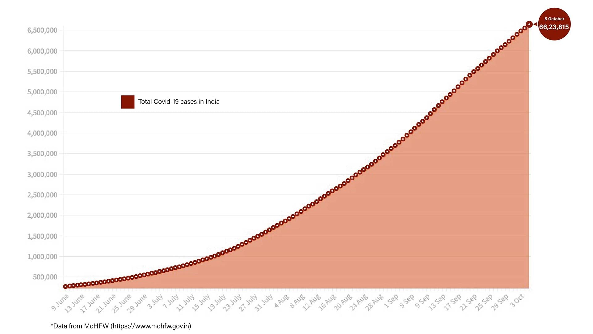 India so far has had a total of 66,23,815 Covid-19 cases. A total of 75,829 new confirmed cases were reported in the last 24 hours in the country.