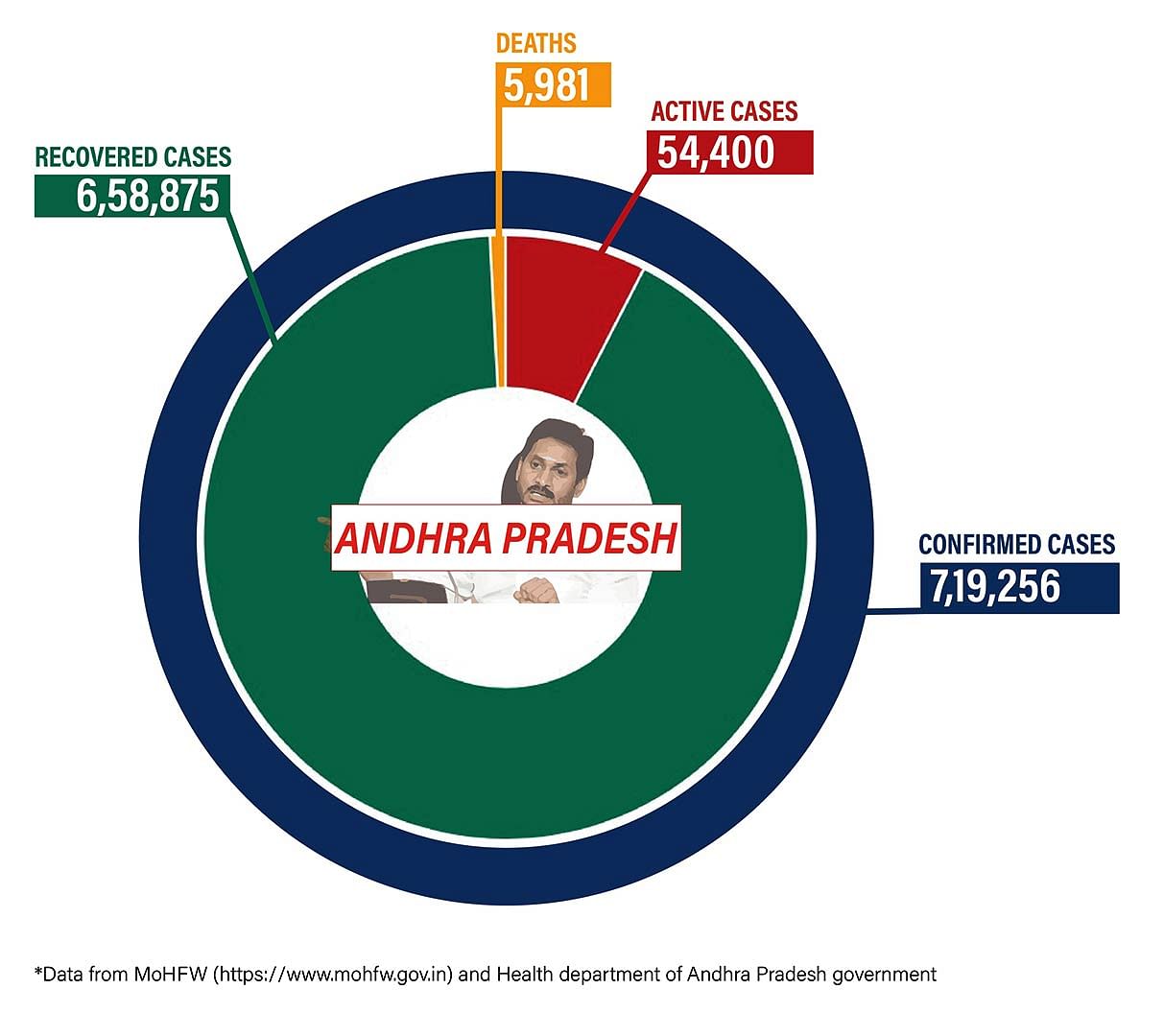Andhra Pradesh has reported 6,242 new cases in the last 24 hours, taking the total number of cases to 7,19,256. As many as 40 people have died in the state in the last 24 hours, and the total toll in state stands at 5,981.