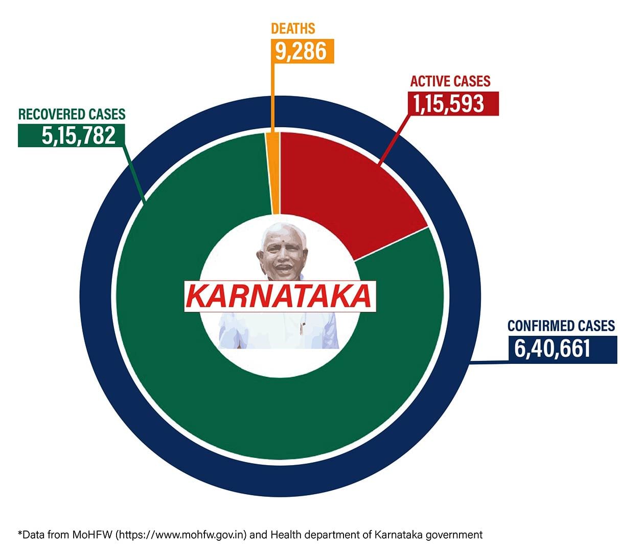 Karnataka is the state with the second highest burden of active cases in the country. Over the last 24 hours, the state saw 10,145 fresh cases, bring the total number of cases in the state to 6,40,661. Of these, a little over 1.15 lakh are active cases.