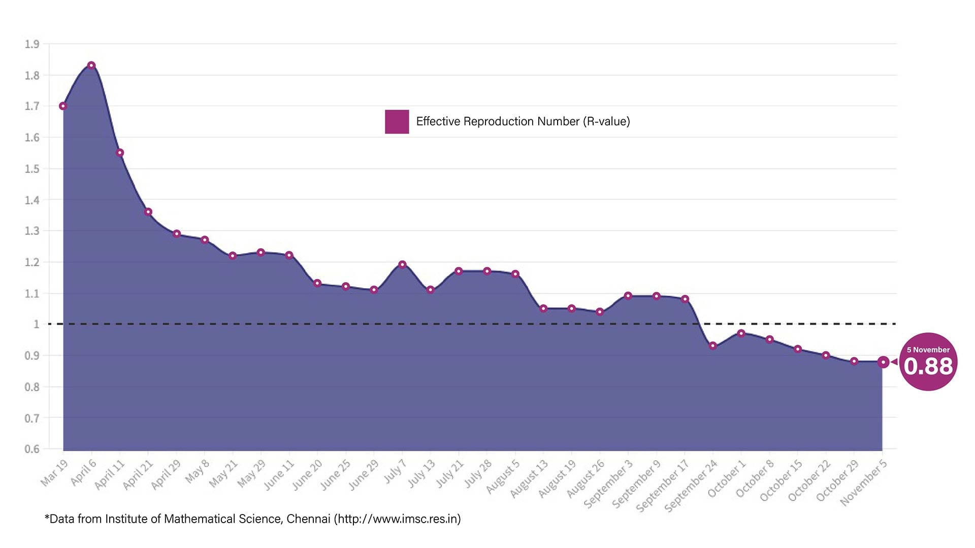 India’s R value remains constant at 0.88 but there are wide variations among states. However, the good news is that even after Durga Puja, the R value has remained below 1 in West Bengal.